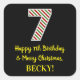 Pegatina Cuadrada Feliz 7 cumpleaños y Feliz Navidad, nombre persona