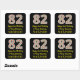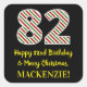 Este sencillo y divertido diseño de pegatina de cumpleaños con temática de Navidades y cumpleaños, el 25 de diciembre, presenta un gran número "82" con un patrón de rayas verdes, blancas y rojas, junto con el mensaje "Feliz cumpleaños número 82 y Feliz Navidad", y un nombre personalizado. El fondo es negro de color. Pegatinas como este podrían ser una manera divertida de preparar regalos que se están dando a alguien cuyo 82 segundo cumpleaños cae el 25 de diciembre (Día del Navidad). [~Z0000409]