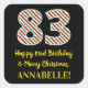 Pegatina Cuadrada Feliz 83 cumpleaños y Feliz Navidad, nombre person