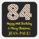 Pegatina Cuadrada Feliz 84º cumpleaños y Feliz Navidad, nombre perso