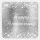 Pegatina Cuadrada Feliz aniversario de plata brillante con destellos