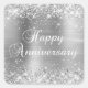 Pegatina Cuadrada Feliz Aniversario de Purpurina Plateada Brillante