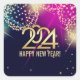 Pegatina Cuadrada Feliz Año Nuevo 2024. Fuegos artificiales