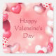 Pegatina Cuadrada Feliz Balón de Corazón Rosa de San Valentín