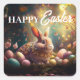 Pegatina Cuadrada Feliz Conejo de Pascua con huevos de Pascua