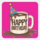 Pegatina Cuadrada Feliz Copa de Café de Cumpleaños con gorra fiesta