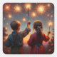 Pegatina Cuadrada Feliz cuarto hijo con esparklers personalizado