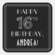 Pegatina Cuadrada FELIZ CUMPLEAÑOS 16; Estilo Art Deco; Nombre perso
