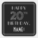 Pegatina Cuadrada FELIZ CUMPLEAÑOS 20; Estilo Art Deco; Nombre perso