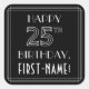 Pegatina Cuadrada FELIZ CUMPLEAÑOS 25; Estilo Art Deco; Nombre perso