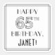 Este elegante diseño pegatina cuadrado de estilo art decó inspirado en la época de los años 1920 y 1930 tiene el mensaje "FELIZ CUMPLEAÑOS 65", junto con un nombre de destinatario de personalizable. El número 65TH tiene un diseño geométrico elegante y también hay un borde alineado alrededor del mensaje de bienvenida de cumpleaños. Pegatinas como estos podrían ser distribuidos o usados en una fiesta de cumpleaños realizada para celebrar el 65º cumpleaños de alguien, o tal vez usados para preparar invitaciones o regalos para un evento de este tipo. [~Z0000647]