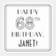 Pegatina Cuadrada FELIZ CUMPLEAÑOS 68, estilo Art Deco, nombre perso