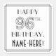 Este elegante diseño pegatina cuadrado de estilo art decó inspirado en la época de los años 1920-1930 presenta el mensaje "FELIZ cumpleaños 96", y un nombre de destinatario de personalizable. El número 96TH tiene un aspecto geométrico elegante y también hay un borde alineado alrededor del mensaje de bienvenida de cumpleaños. Pegatinas con temas de cumpleaños como estos pueden ser distribuidos o usados en una fiesta de cumpleaños que celebra el 96º cumpleaños de alguien, o quizás usados al preparar invitaciones o regalos para un evento de este tipo. [~Z0000647]