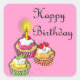 Pegatina Cuadrada Feliz cumpleaños a los pasteles de la Copa de Fies
