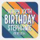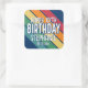 Pegatina Cuadrada Feliz cumpleaños - Añadir año y nombre con franjas