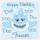 Feliz cumpleaños, pegatinas del bebé Shark Doo Doo Doo con un tiburón azul para la fiesta de cumpleaños de un niño pequeño.