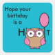 Pegatina Cuadrada Feliz cumpleaños búho rosa y tan