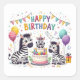 Pegatina Cuadrada Feliz Cumpleaños Cebras Lindas Celebrando