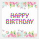 Pegatina Cuadrada Feliz cumpleaños, diseño floral