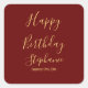 Pegatina Cuadrada Feliz Cumpleaños Dorado Burdeos Rojo Oscuro Nombre