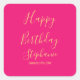 Pegatina Cuadrada Feliz Cumpleaños Dorado Rosa Caliente Nombre Perso