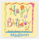 Pegatina Cuadrada Feliz cumpleaños Fiesta nombre amarillo personaliz