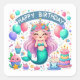 Pegatina Cuadrada Feliz Cumpleaños Linda Sirena Celebrando