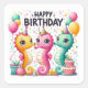 Pegatina Cuadrada Feliz Cumpleaños Lindos Caballitos de Mar Celebran