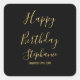 Pegatina Cuadrada Feliz Cumpleaños Nombre Personalizado Amarillo Dor