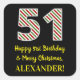 Pegatina Cuadrada Feliz cumpleaños número 51 y Feliz Navidad, nombre