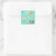 Pegatina Cuadrada Feliz cumpleaños: perros, globos y flores