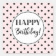 Pegatina Cuadrada Feliz cumpleaños, puntos blancos negros rosados