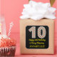 Este sencillo y divertido diseño de pegatina de 25 de diciembre, con temática de cumpleaños y temática de Navidades, presenta un gran número "10" con un patrón de rayas verdes, blancas y rojas, junto con el mensaje "Feliz décimo cumpleaños y Feliz Navidad", y un nombre personalizado. El fondo es negro de color. Pegatinas como este pueden ser divertidos de usar al preparar regalos que se le dan a alguien cuyo décimo cumpleaños cae en el Día del Navidad (25 de diciembre). [~Z0000409]