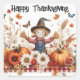 Pegatina Cuadrada Feliz Día de Acción de Gracias Scarecrow