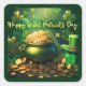 Pegatina Cuadrada Feliz Día de San Patricio, olla de monedas de oro