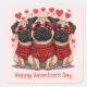 Pegatina Cuadrada Feliz Día de San Valentín Perros Pug