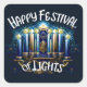 Pegatina Cuadrada Feliz Festival de las Luces Hanukkah Menorá