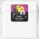 Pegatina Cuadrada Feliz Fiesta de Halloween Mummy Pink