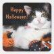 Pegatina Cuadrada Feliz Gato de Halloween Calico Kitty