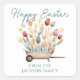 Pegatina Cuadrada Feliz Guión de Pascua con barril de rueda de tulip