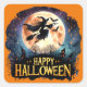 Pegatina Cuadrada Feliz Halloween - Bruja en la sala de vuelo
