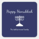Pegatina Cuadrada Feliz Hanukkah Menorah Azul simple