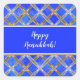 Pegatina Cuadrada Feliz Janucá Dorado, Plateado y Entrelazado Blanco