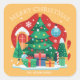 Crea pegatinas para etiquetar a tus Navidades como productos caseros, galletas, dulces, golosinas, favores de fiesta y más con una divertida escena de fiestas de Navidades, la palabra Feliz Navidad y tu nombre en letras de moda.