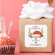 Una cara de reno linda y caprichosa con un Santa que decora este pegatina cuadrado con las palabras Feliz Navidad. Diversión por tus regalos de vacaciones. Personalízalo con tu nombre. Diseñado para ti por Blackberry Boulevard.