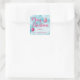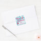 Pegatina Cuadrada Feliz Navidad azul y rosa personalizado