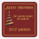 Pegatina Cuadrada Feliz Navidad bilingüe Navidad rojo y dorado
