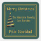 Pegatina Cuadrada Feliz Navidad bilingüe Navidad verde oro
