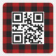 Código QR que lee Feliz Navidad con un patrón rojo y negro de chapa búfala.