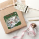 Feliz Navidad desde el Pegatina de la Plaza de la Fiesta de Cabina. De nuestro invierno en la colección Cabin. Cabina de troncos con ciervo y vistas al oso. La estrella de Belén brilla con fuerza. Un camión vintage está cargado de regalos y decoraciones para el día especial. El camarote está iluminado para los clientes más esperados. Cálido y acogedor. Perfecto para sellar paquetes de regalo, sobres, regalos de comida. "¡Feliz Navidad!"